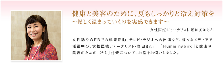 人は時間とともに歳を重ねていきます。歳を重ねても若く、美しく、元気な自分でいたいと誰もが思うことです。健康な毛細血管のためにも、体を締め付けない「Hummingbird」は女性の味方だと思います。