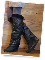 筒状になっているので、足元からスッと着用でき、インナー、アウター(パンツの上や、スカートの下など)、どちらでも、ロングブーツ感覚でご活用頂けます。